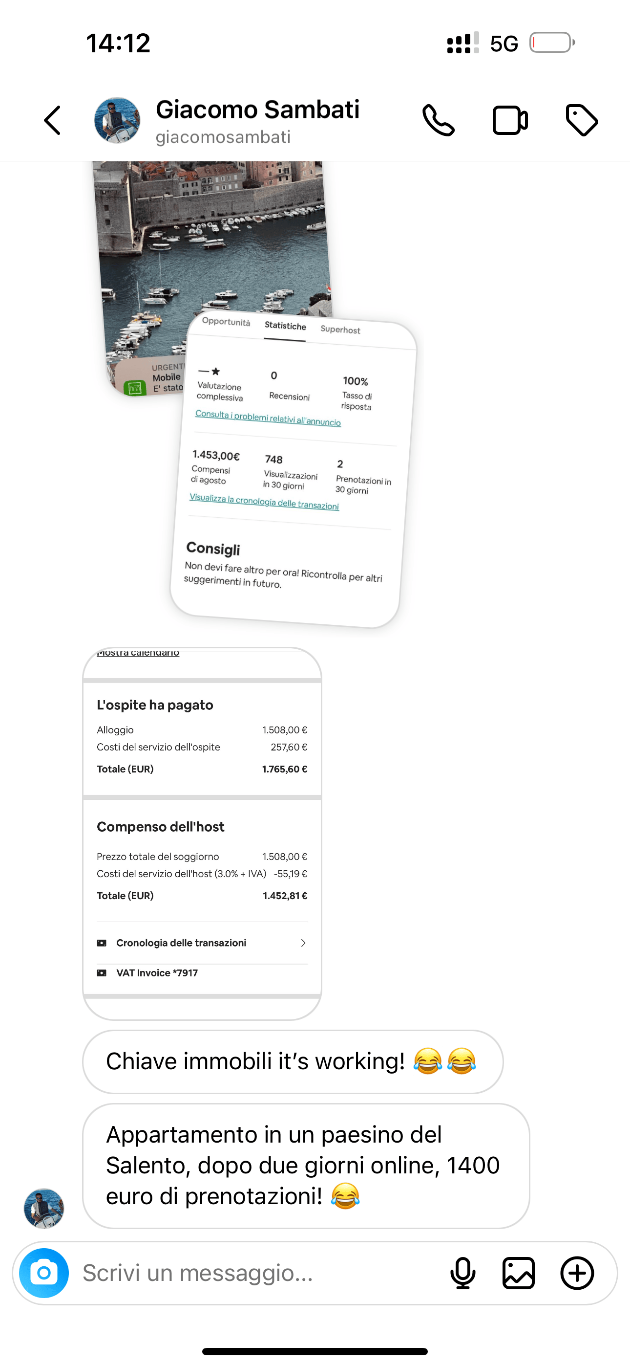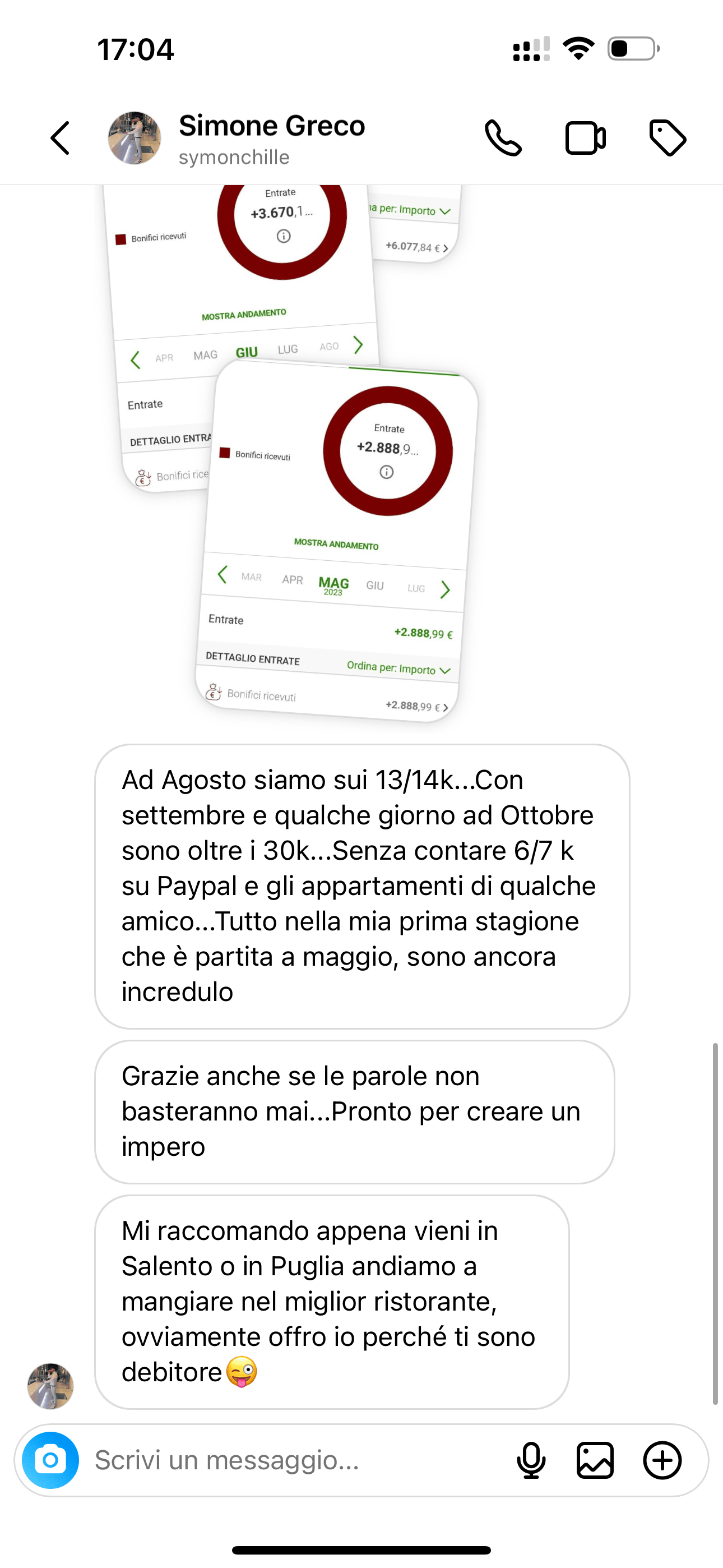 • CEO e Founder di Chiave Immobiliare, è conosciuto per la sua trasparenza nel mostrare risultati e presentare casi studio che documentano l’andamento del suo Business senza nascondere nulla, come ad esempio: